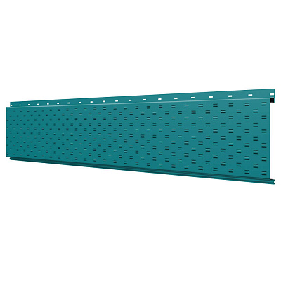 Линеарная потолочно-стеновая панель с ПЕРФОРАЦИЕЙ для вентиляции цвет RAL5021 Морская Волна применяется в качестве софитов для подшивы крыши, наружной и внутренней отделки потолков, стен, фронтонов фасада дома в Улан-Удэ.