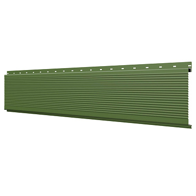 Линеарная потолочно-стеновая панель РИФЛЕНАЯ усиленная цвет RAL6002 Зеленый Лист применяется в качестве софитов для подшивы крыши, наружной и внутренней отделки потолков, стен, фронтонов фасада дома в Улан-Удэ.