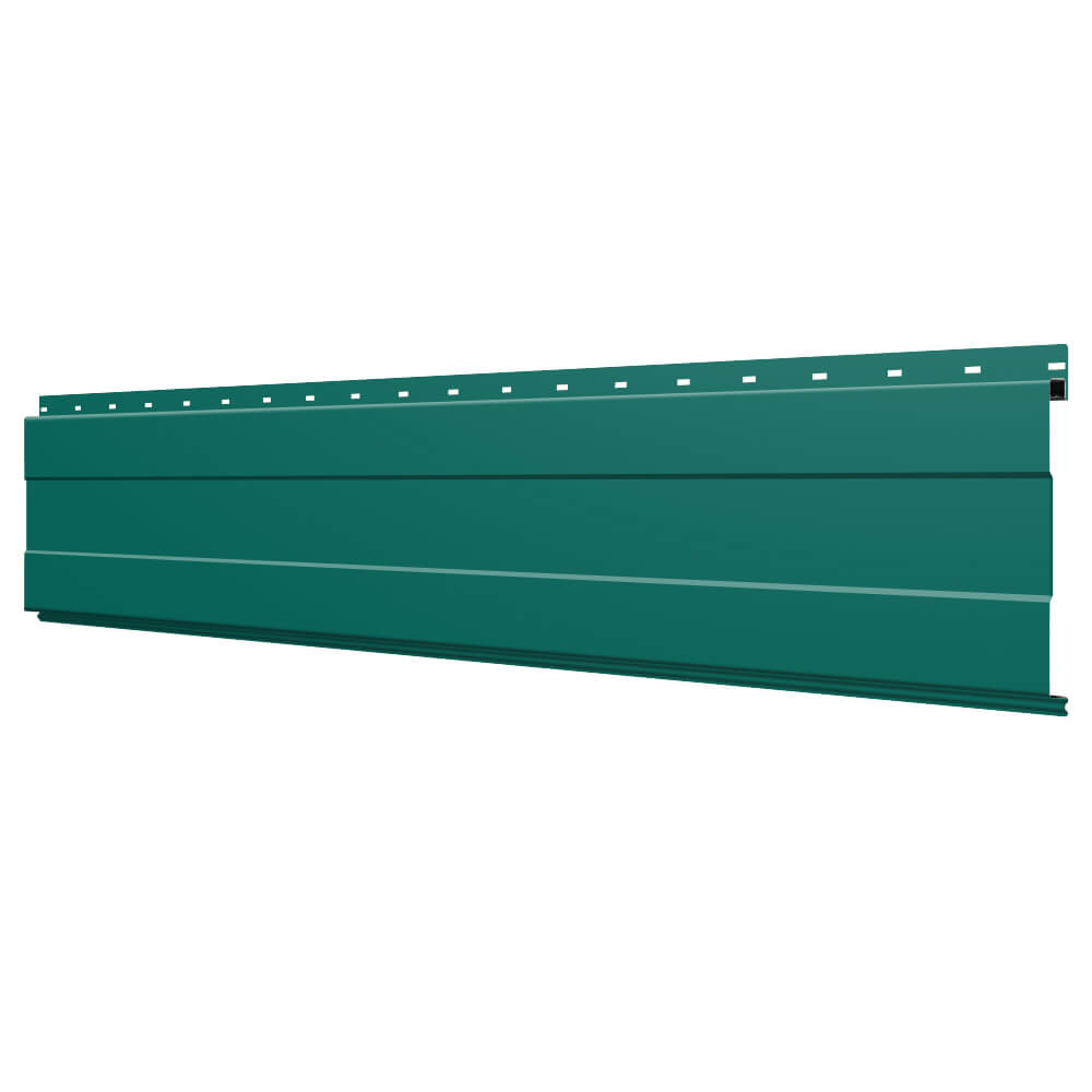 Линеарная потолочно-стеновая панель с ПОЛОСОЙ усиленная цвет RAL6026 Опал применяется в качестве софитов для подшивы крыши, наружной и внутренней отделки потолков, стен, фронтонов фасада дома в Улан-Удэ.