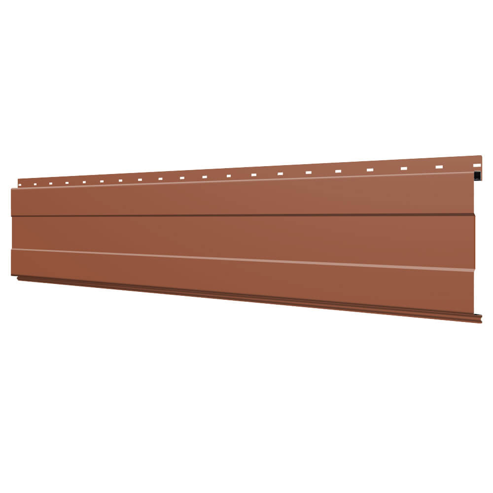 Линеарная потолочно-стеновая панель с ПОЛОСОЙ усиленная цвет RAL8004 Терракотовый применяется в качестве софитов для подшивы крыши, наружной и внутренней отделки потолков, стен, фронтонов фасада дома в Улан-Удэ.