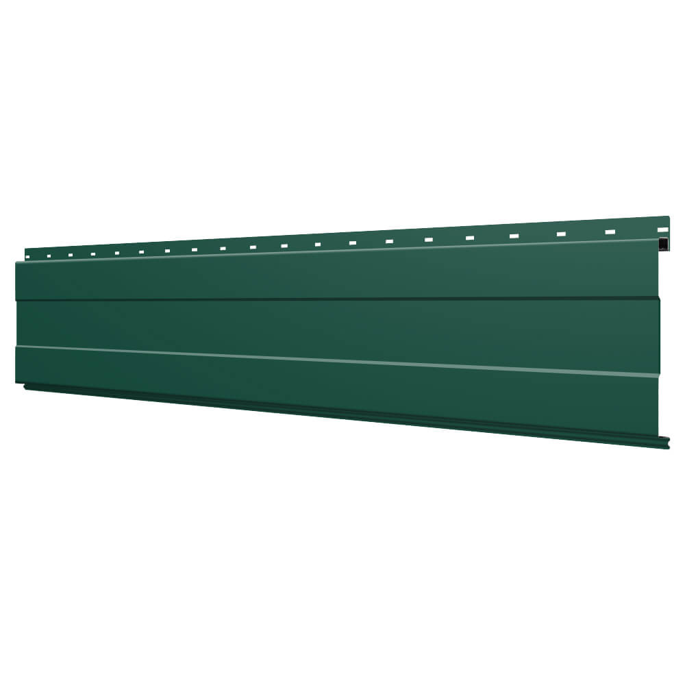 Линеарная потолочно-стеновая панель с ПОЛОСОЙ усиленная цвет RAL6005 Зеленый Мох применяется в качестве софитов для подшивы крыши, наружной и внутренней отделки потолков, стен, фронтонов фасада дома в Улан-Удэ.