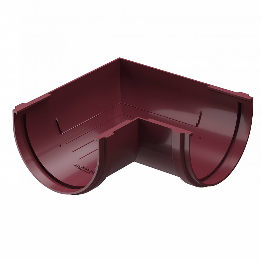 Угловой элемент желоба универсальный ДЕКЕ STANDARD d120мм 90 градусов цвет RAL 3005 Красный в Улан-Удэ. Угловые элементы устанавливаются как на внешних, так и на внутренних углах кровли и предназначены для соединения желобов.
