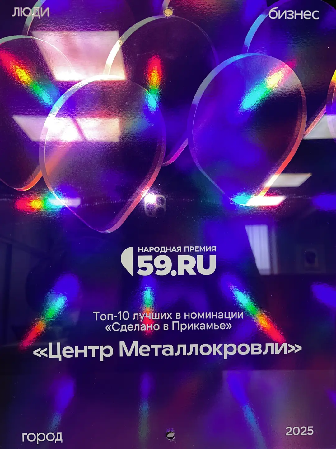 Компания «Центр Металлокровли» вошла в ТОП-10 лучших предприятий в номинации «Сделано в Прикамье» по версии народной премии 59.RU. Это признание — результат доверия и поддержки жителей Перми.